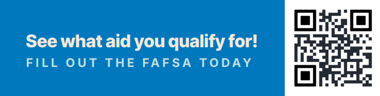 Fill out the FAFSA application at studentaid.gov/h/apply-for-aid/fafsa or by scanning the QR code above.
